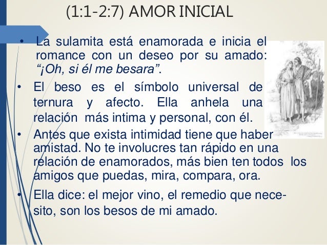 Este cantar fue compuesto por el rey Salomn del antiguo Israel al principio de su reinado de cuarenta aos probablemente alrededor del 1020 antes de nuestra era y narra la historia de amor entre un pastor y una campesina sulamita. 3 Olorosos son tus suaves ungentos. El libro del cantar de los cantares inicia antes de que se concrete la boda.