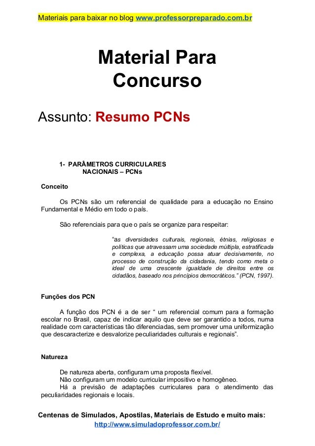 3 Resumo Pcns Concurso Pedagogia Parametros Curriculares Nacionais Questoes De Concurso