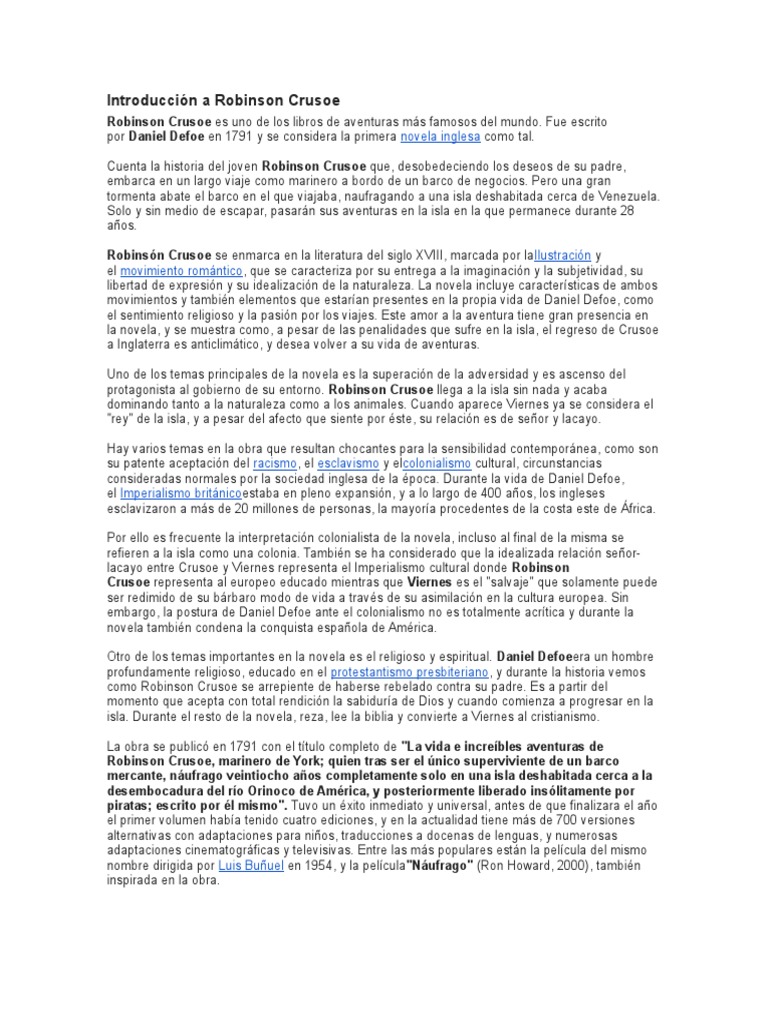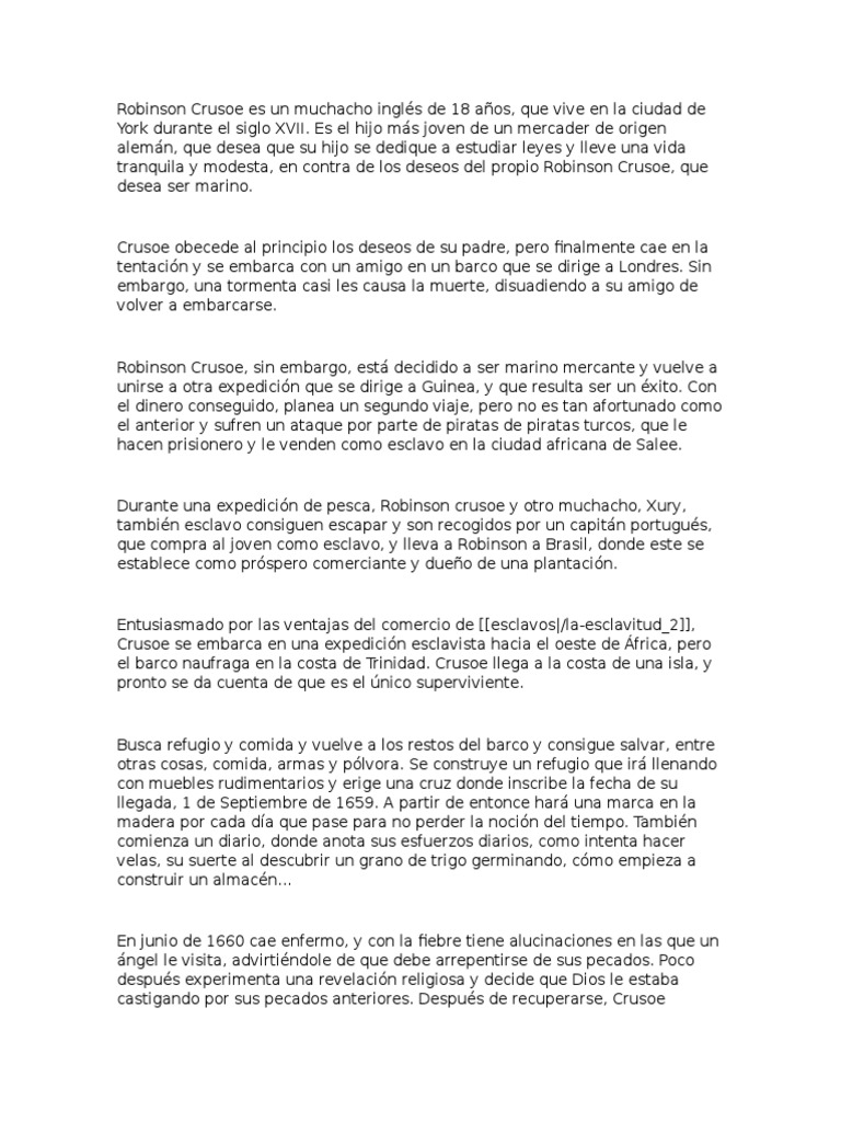 Doc El Resumen De La Obra Robinson Crusoe Es El Siguiente Wilson Valdeblanquez Urango Academia Edu