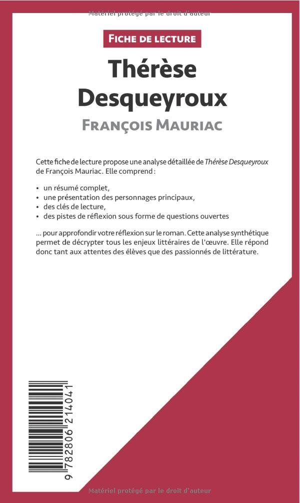 Un non-lieu vient dtre prononc. Franois Mauriac Thrse Desqueyroux Roman Chapitre I Thrse Desqueyroux sort discrtement du Palais de Justice. Cette aide totalement rdige en format pdf sera utile aux lycens ou tudiants ayant un.